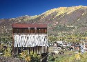 The Veteran Ore Bin a remnant of the Aspen silver mining boom of the 1880's stood on Aspen Mountain in the middle of the present day ski area.